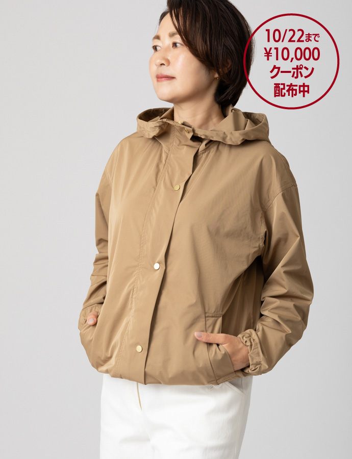 ゴールドづかいで華やかに。撥水性・透湿性のある軽量ブルゾン…