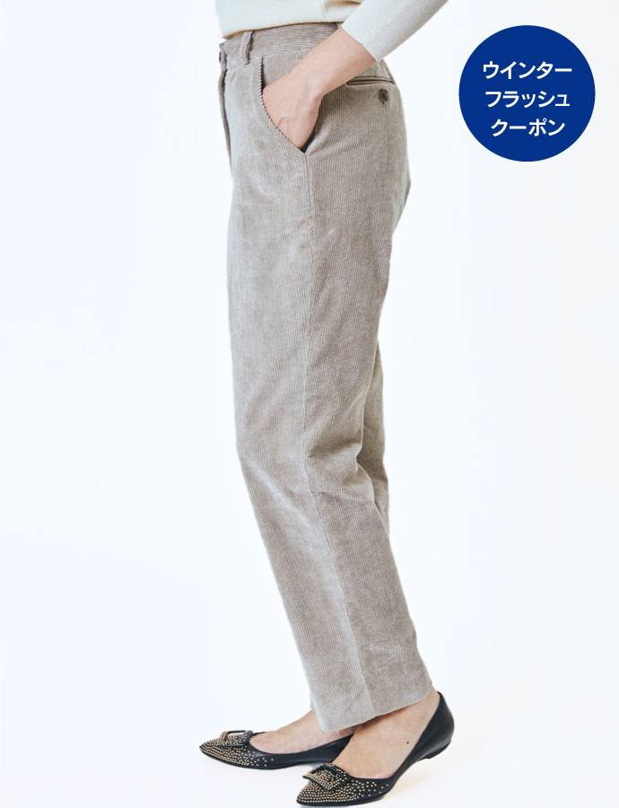 ヨーロピアンカラーが美しい、エレガントなコーデュロイパンツ…