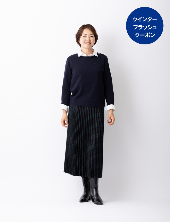 冬の空気に映える、明るいネイビー。セットアップで品よくキュートに。単品で華やかに…