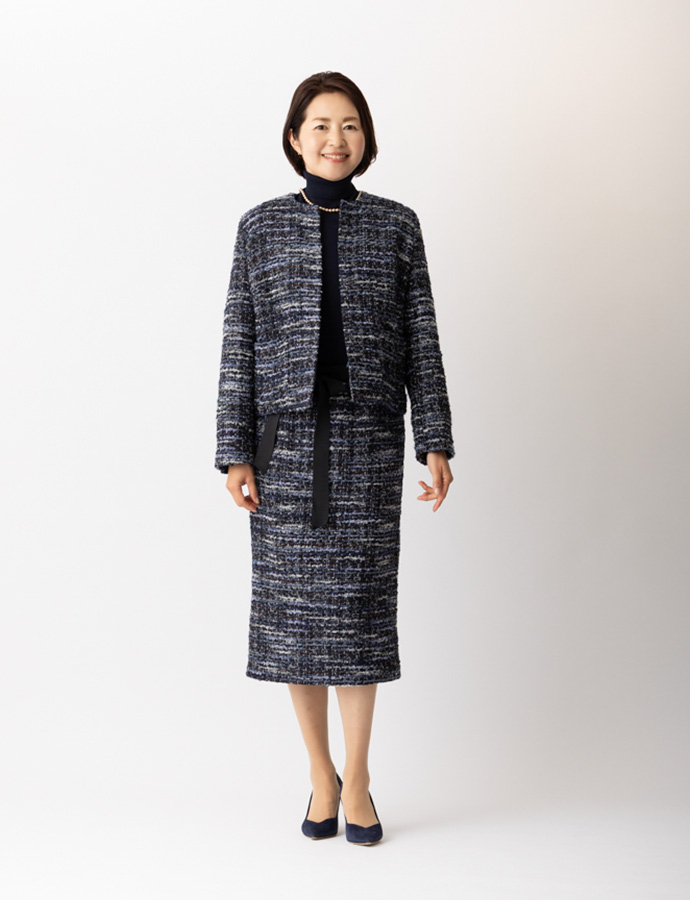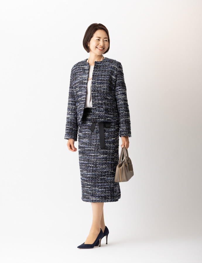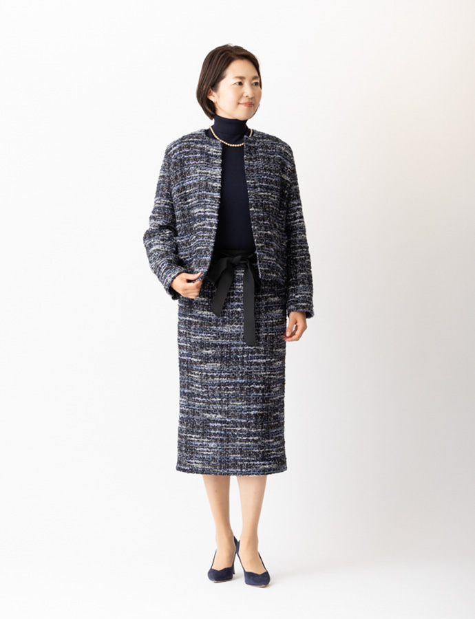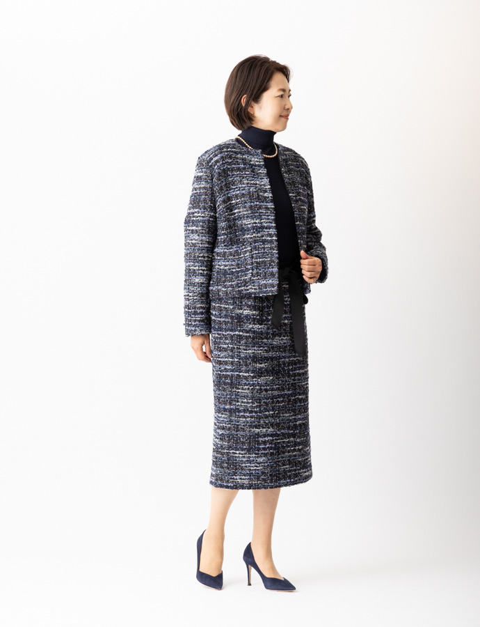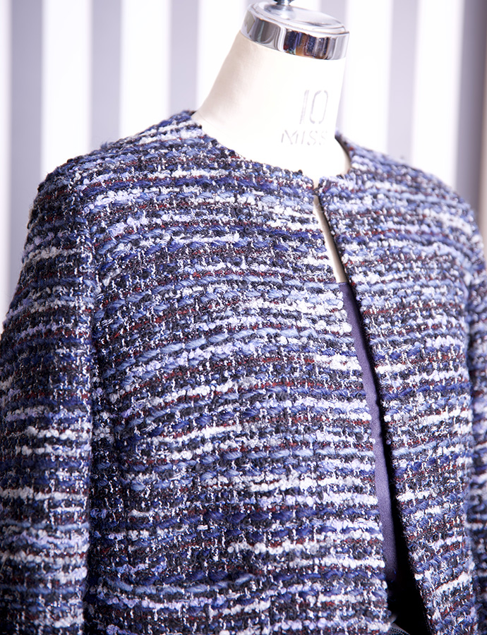 一昨年、大きな反響を呼んだmadameH CLOSETのルサージュ企画、待望の第二弾となる今回は、日常からフォーマルまでシーンを選ばない、軽やかなネイビー系ツイードをセレクトしました。