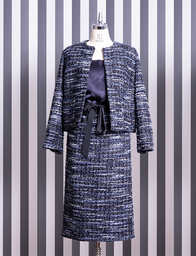 一昨年、大きな反響を呼んだmadameH CLOSETのルサージュ企画、待望の第二弾となる今回は、日常からフォーマルまでシーンを選ばない、軽やかなネイビー系ツイードをセレクトしました。