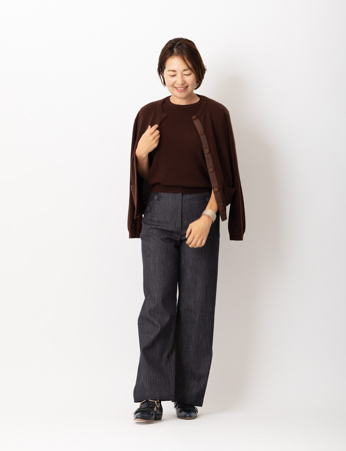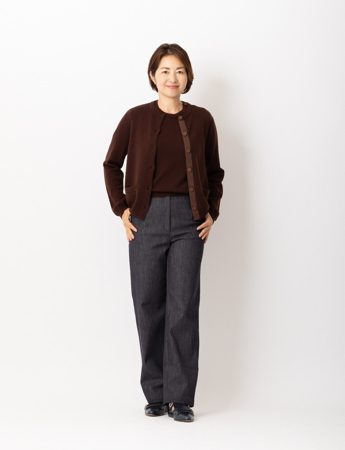 ボルドーに近い深みのあるマロンブラウンは、マダムHの得意カラー。
