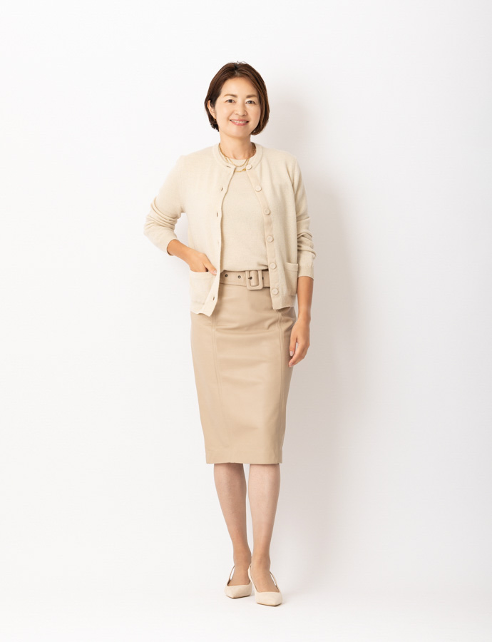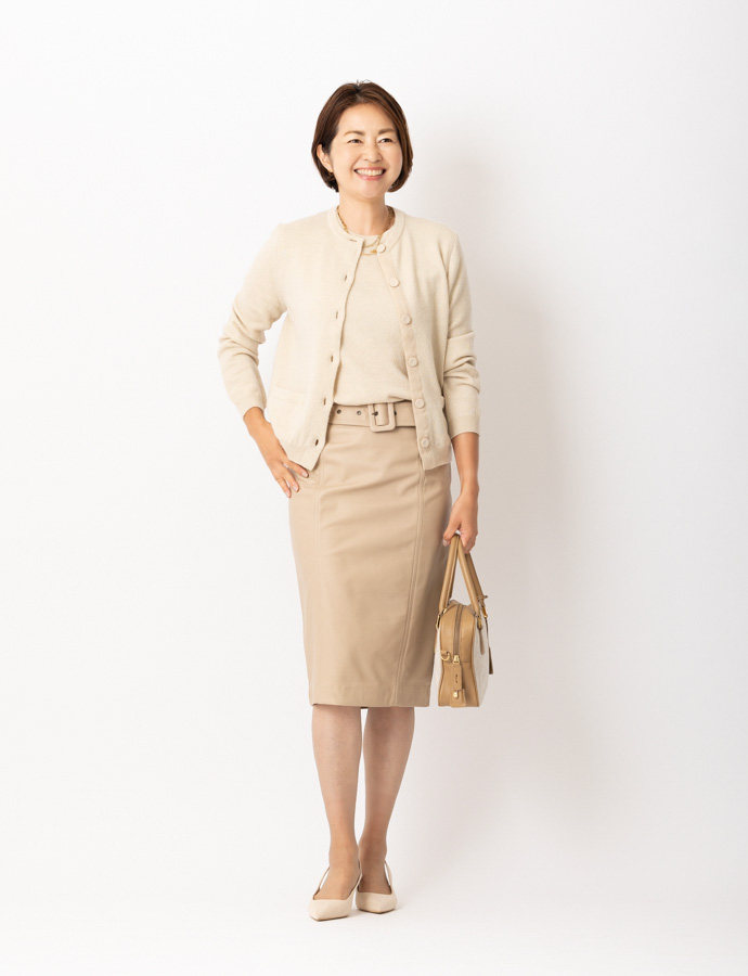 柔らかで透明感のあるベージュは、編み地の上質さをいっそう引き立てています。