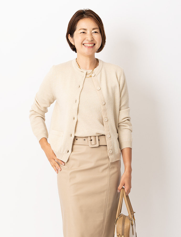 ボルドーに近い深みのあるマロンブラウンは、マダムHの得意カラー。