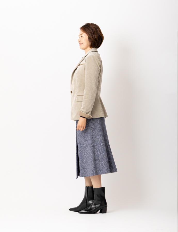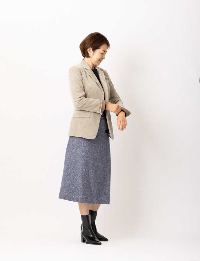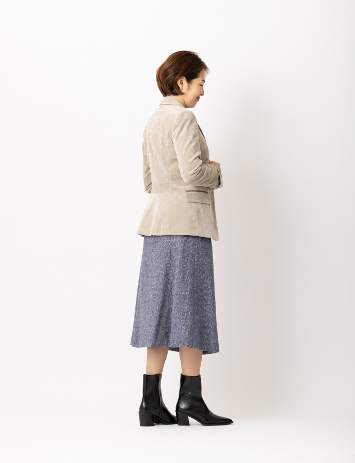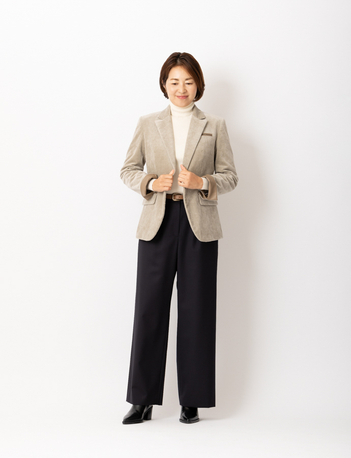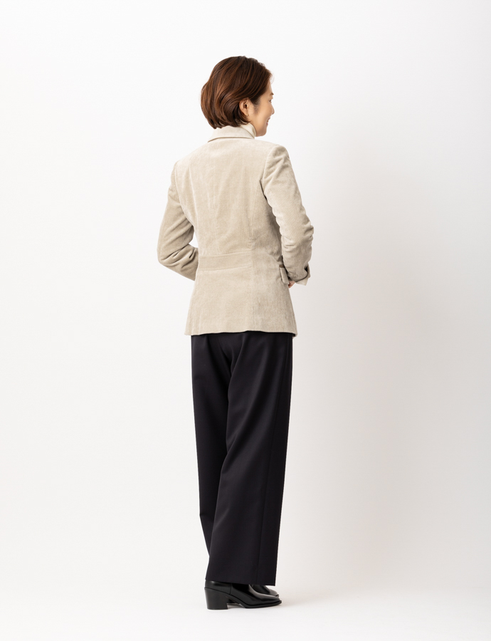 madameH CLOSETならではの美しいパターンで、カジュアルな印象のあるコーデュロイをすっきりとスマートな印象に。