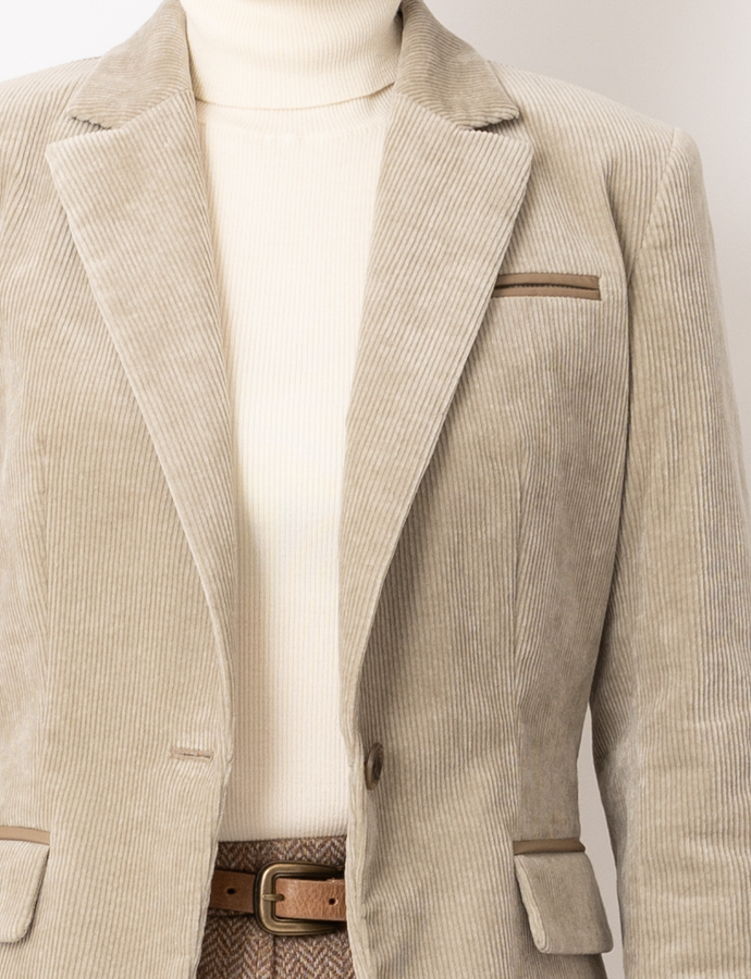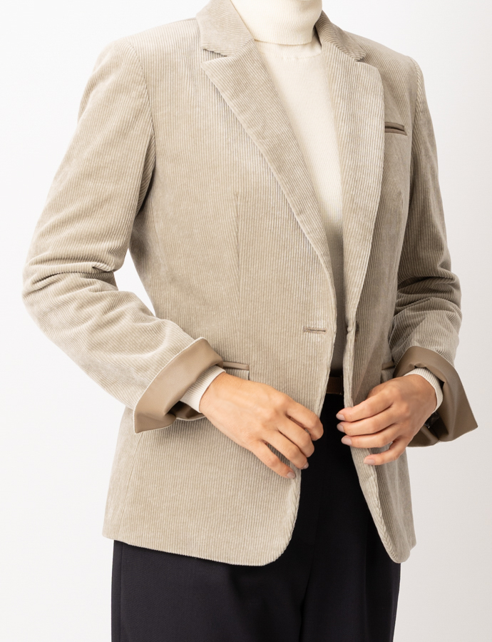 サンドベージュカラーが美しい、ストレッチコーデュロイのジャケットです。