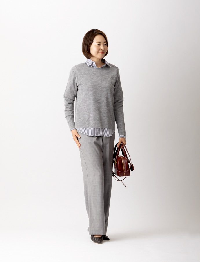 繊細なドレープ感が美しく、ジャケットのインナーとしてもおすすめ。しっかりとした編み地なので型崩れしにくく、長くきれいに着こなせます。