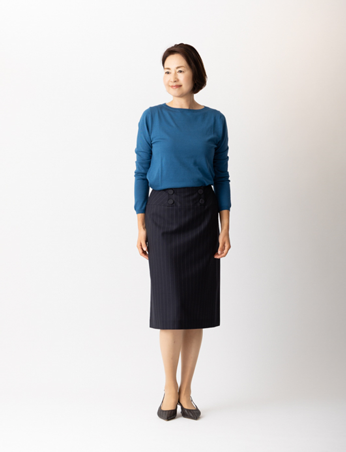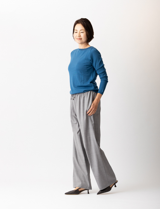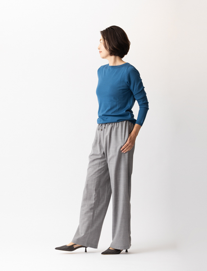女性のネックラインを美しく見せるボートネックプルオーバーです。
