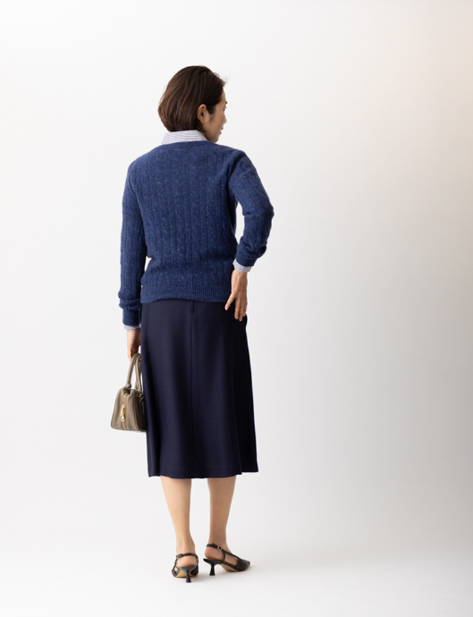 カシミヤの中でも最高級とされる、希少なホワイトカシミヤ糸を使った、とろけるような肌触りのニットです。