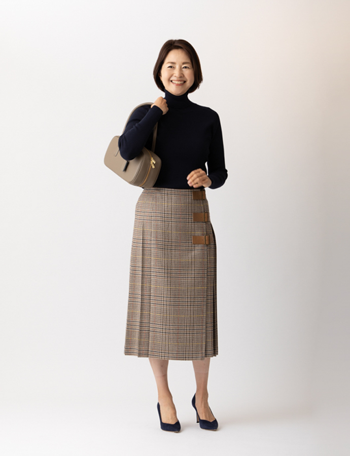 ブラウンベースのグレンチェックは、どんな色にもあう、コーディネート力抜群のカラー。秋冬のコーデを楽しくしてくれます。