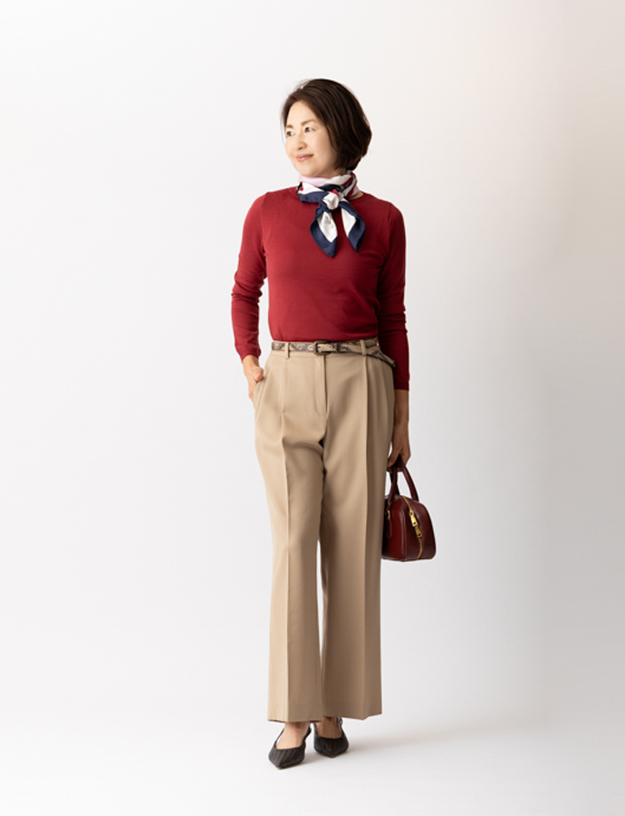 madame のスカーフ選びのポイントは「白」。