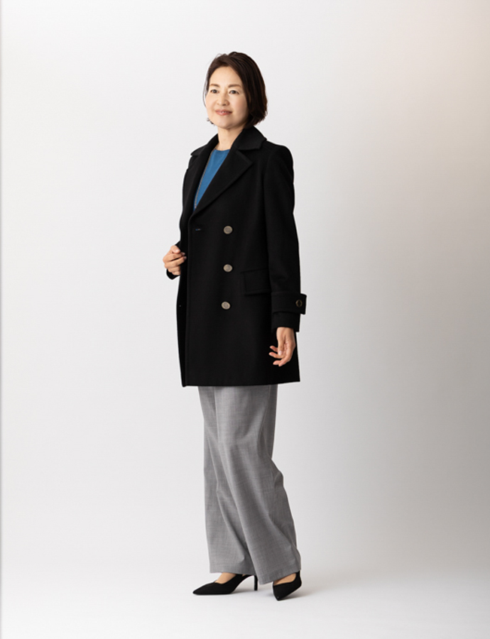 丈は、足さばきのよいハーフ丈。重ね着もOKなゆったり目のサイズ感で、デイリーにもおでかけにも便利にお召しいただけます。